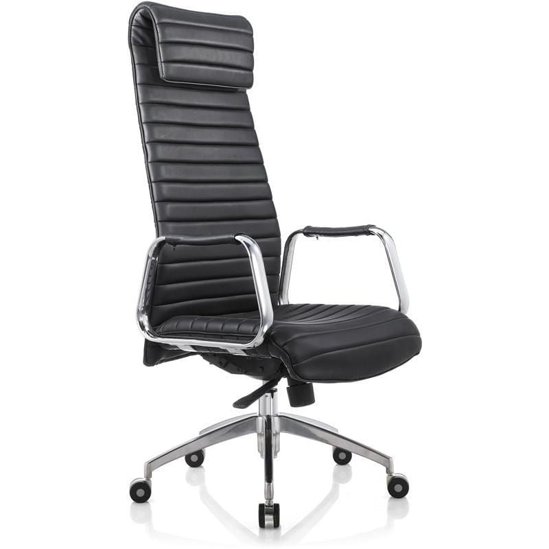 Кресло для руководителя с обивкой из натуральной кожи. Крестовина - полированный алюминий. Подлокотники - хромированный металл. Механизм качания позволяет спинке и сиденью отклоняться в соотношении 2:1, угол наклона изменяется синхронно, возможность фиксации кресла в нескольких положениях. Регулировка по высоте (газлифт)