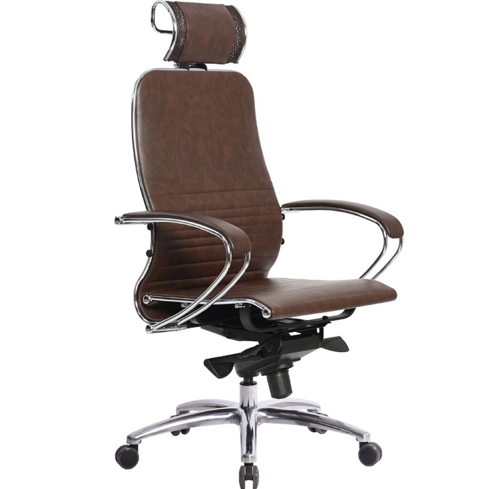 Сверхкомфортное офисное кресло мягкое и удобное и вместе с тем практичное. Дышащая обивка обеспечивает воздухопроницаемость. В компактном и удобном кресле сочетаются продуманная эргономика и привлекательная цена. Кресло Samurai K-2.04 - это уникальное сочетание компактности, современного дизайна и мягкой обивки. При разработке этого кресла компания "Метта" традиционно позаботилась о комфорте каждого покупателя: эргономичная форма спинки разгружает позвоночник, а специальная конструкция сиденья способствует равномерному распределению нагрузки. Двухзонная регулировка подпора поясницы позволяет создать идеальную поддержку поясницы. Расположиться в кресле еще комфортнее помогут удобные подлокотники с мягкой обивкой, регулировка высоты сиденья, жесткости механизма качания и его фиксация в рабочем положении. Конструкция кресла способствует поддержанию естественного кровообращения и исключает сдавливание сосудов ног. Стальной каркас покрыт хромом и обеспечивает долговечность кресла. Синхромеханизм MULTIBLOCK благодаря раздельному качанию сиденья и спинки позволяет телу периодически разгибаться, что улучшает кровоток и разминает мышцы спины. Обивка из NewLeather — это инновационный экологически чистый материал, производимый из натуральной кожи, армирован нейлоновой нитью, имеет волокнистую натуральную основу, благодаря чему данный материал не уступает обычной натуральной коже по эластичности и прочности. Кресло оснащено съемным 3D подголовником возможностью регулировки глубины, высоты и угла наклона. Каркас подголовника: стальной, покрытый зеркальным хромом, обтянут высокопрочной сетчатой тканью со вставкой из износостойкого перфорированного материала NewLeather из натуральной кожи. Подлокотники: стальные, покрытые зеркальным хромом, с мягкими накладками из NewLeather.