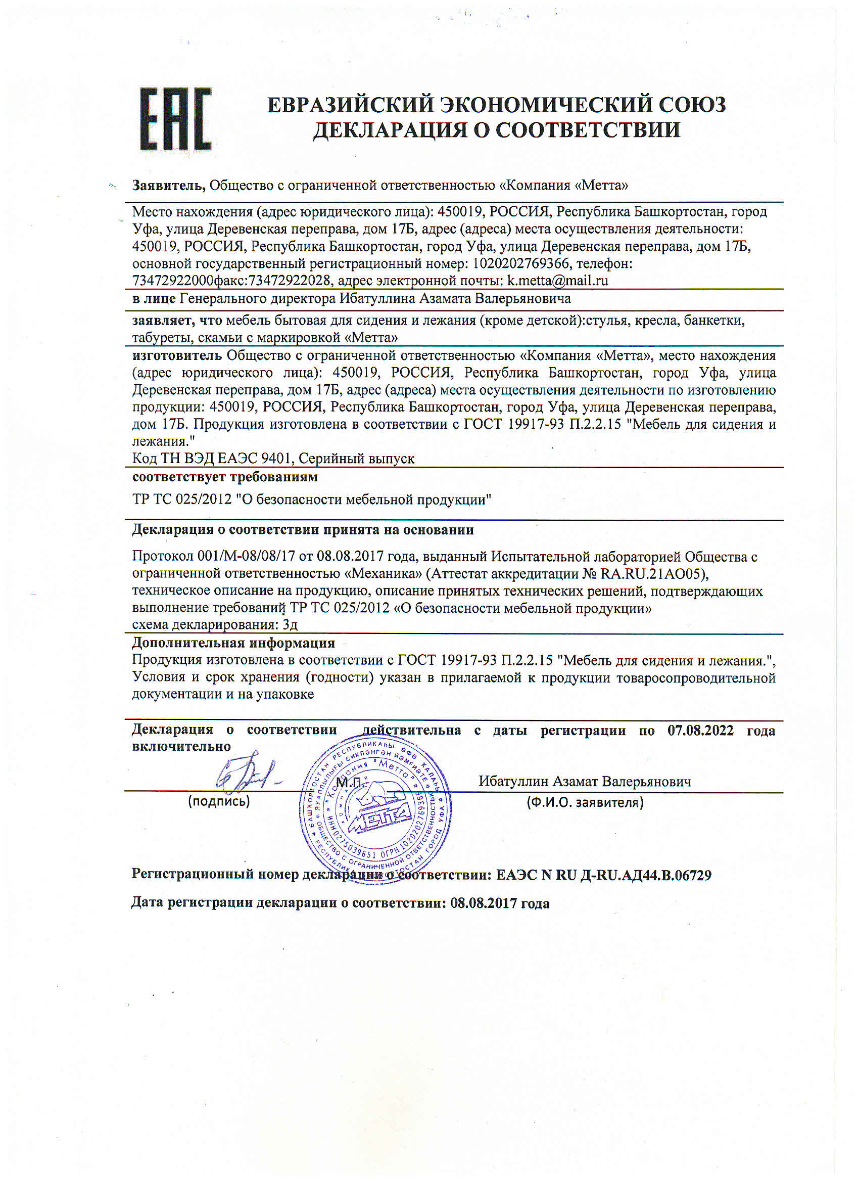 Гарантия на сетчатую ткань и на каркас 10 лет;
