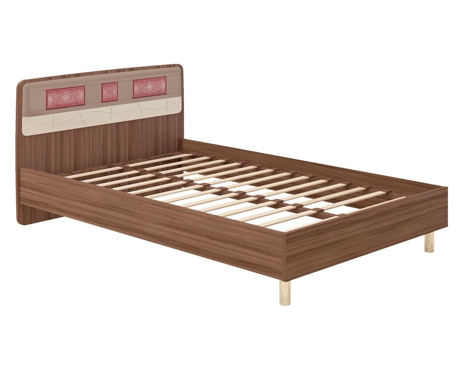 У кровати оригинальное изголовье, фасад с МДФ фрезеровкой и стеклянной вставкой с печатью. Ножки регулируются и могут компенсировать неровности пола. Спальное место 1200-2000.