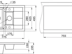 ШxВxГ: 775x195x495 мм.