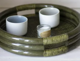 Поднос круглый 21/03 олива