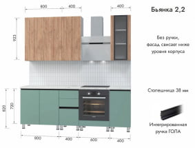 Гарнитур кухонный 2400 (врезная мойка) др