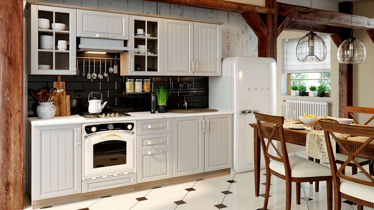 Как и вся коллекция «Прованс», кухня оформлена в классическом французском стиле — теплый древесный оттенок каркаса в сочетании с фасадами кремового цвета с эффектом перламутра. Фасады серии «Прованс» изготовлены из МДФ с уникальной фрезеровкой, имитирующей французский рез. Все шкафы с дверями из модульной программы кухни «Прованс» являются универсальными, т.е. дверь может открываться как в левую так и правую стороны.