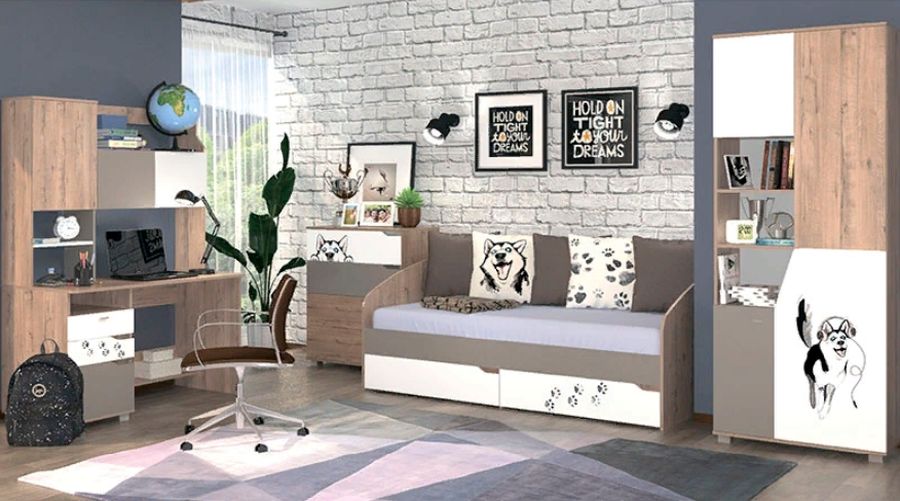 Кровать Хаски 3 Дуб Ирландский Мокко Белый