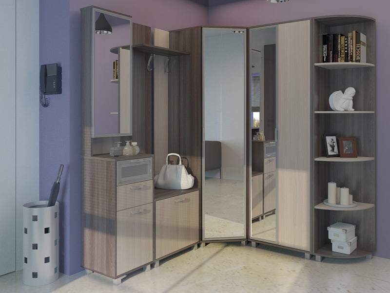 Шкаф угловой с зеркалом Модуль 8 Ясень шимо темн/Ясень шимо св.