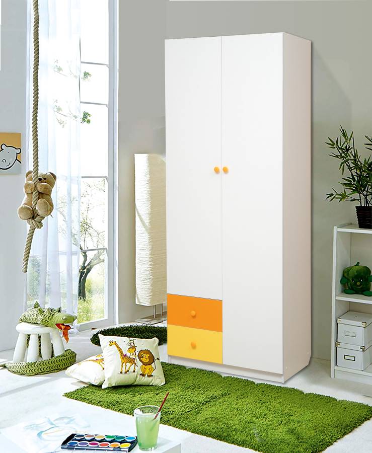 Шкаф 2-х дверный с ящиками Радуга Белый/Оранжевый/Лайм_205085
