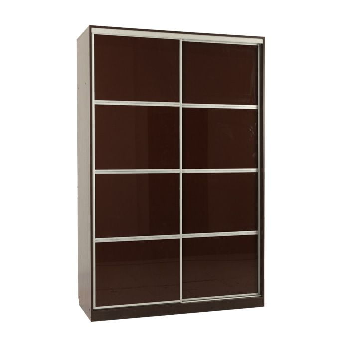 Фасады дверей выполнены из стекла с эмалевым покрытием глубокого «бордового», спокойного «кремового» или насыщенного «коричневого» цвета. Зеркало безопасно, выполнено по технологии триплекс.