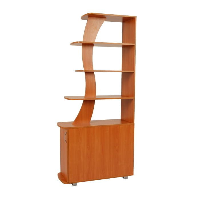 Открытый стеллаж с полками разной длины и шкафчиком в нижней части изделия. Внутри шкафа располагается полка. Стеллаж можно использовать для зонирования пространства. Обратите внимание! Для устойчивости стеллаж рекомендуется крепить к стене (в случае использования стеллажа для зонирования — крепление к стене обязательно). Фурнитура для крепления к стене в комплект стеллажа не входит. Изделие выполнено из ЛДСП толщиной 16 мм. Края отделаны кромкой ПВХ 0,4 мм. Высота тумбы составляет 598 мм. Опоры регулируются от 5 см до 7 см. Расстояние между полками составляет 292 мм.
