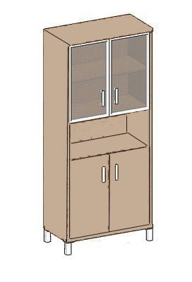 Каркасы шкафов выполнены из ЛДСП толщиной 25мм., кромка ПВХ т. 2мм. Задняя стенка из ХДФ т.4мм разрезная в паз. Внутренние полки из ЛДСП 18мм., кромка ПВХ т.0,8 мм. ЛДСП т 25мм., кромка ПВХ т. 2 с фасадной стороны, кромка ПВХ т. 0,8 с трех сторон. В упаковке один горизонтальный щит, который можно устанавливать вверху или внизу изделия. Опора регулируемая, цвет алюминий. Стекло -тонированное в массе, бронза. Ручка скоба, цвет алюминий. Двери вкладные.