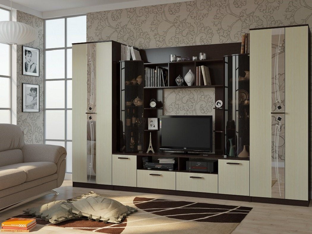 Шкаф для одежды номер 1 оснащен штангой и полкой, номер 2 4-мя полками. Зеркала с пескоструйной обработкой, фьюзингом и стразами Swarovski.