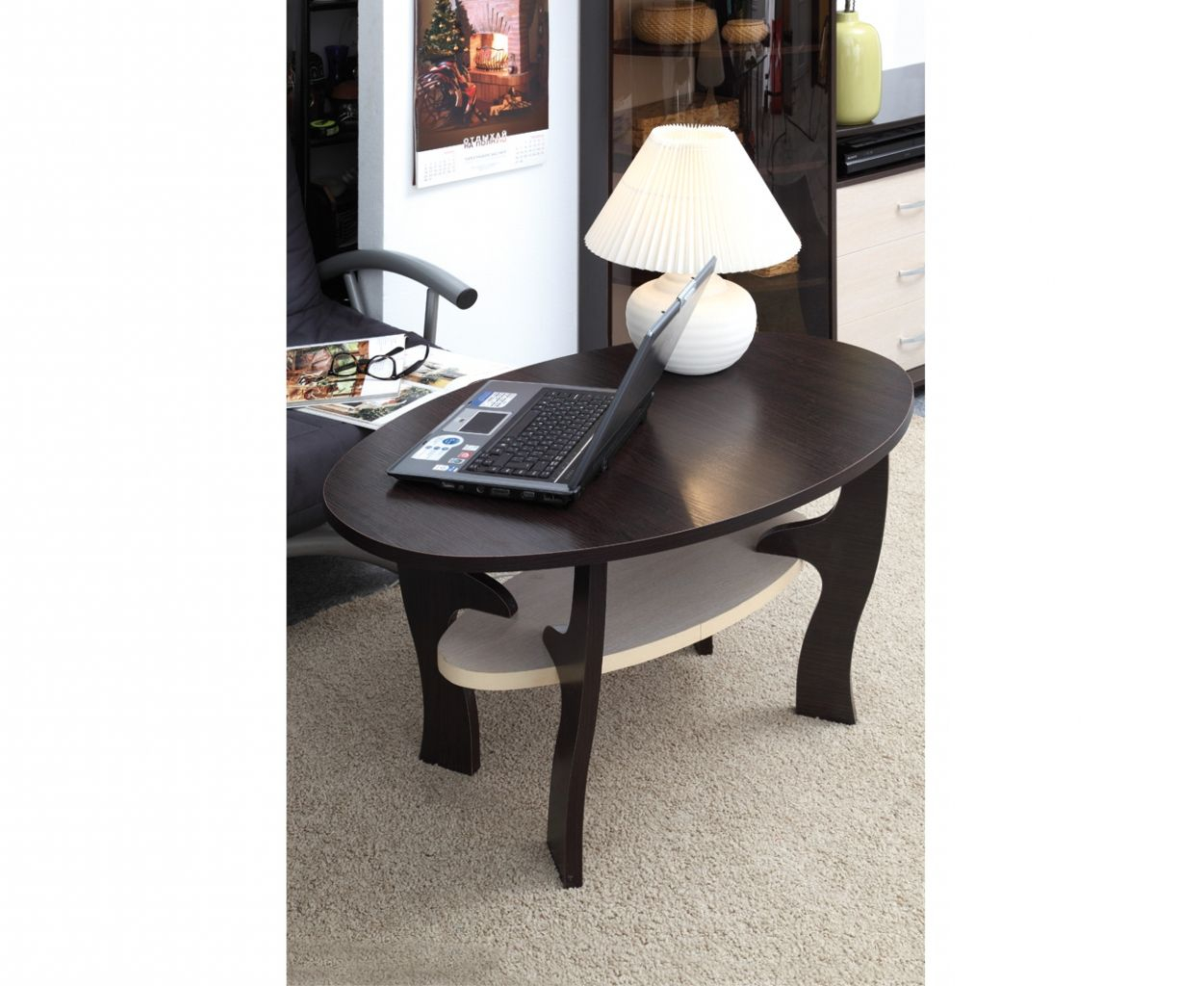 Красивый журнальный столик на необычных изогнутых ножках-опорах Маджеста-4 с овальной столешницей идеально подойдет для гостиной любого интерьера. Под столешницей - полочка для журналов, книг или разных мелочей.