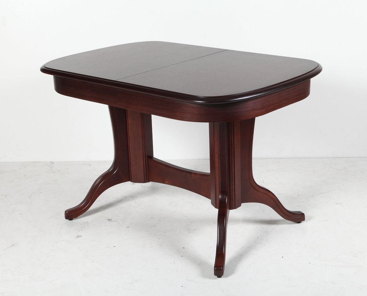 Механизм трансформации-синхронный - при раздвижении стола, потянув одну часть столешницы, вторая часть двигается автоматически одновременно. В механизме на синхронное раздвижение влияет присутствие тросиков. Вставка состоит из двух частей, закрепленных между собой петлями (как книжка) и закреплена к столу осью.