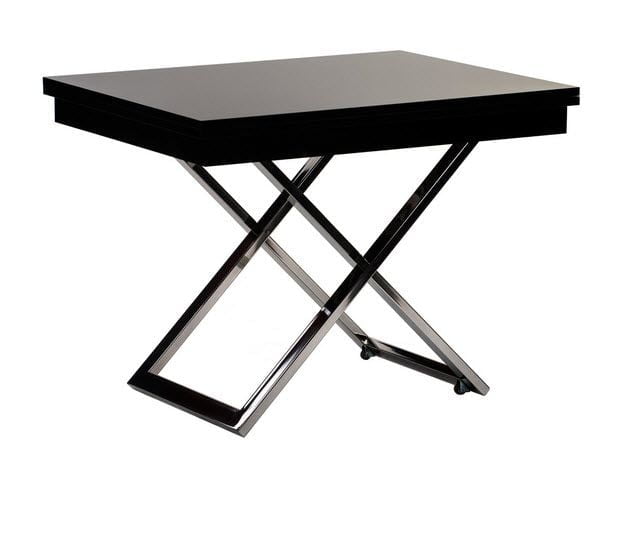 Стол-трансформер Cross — универсальная модель. В сложенном виде стол не занимает много места, и выглядит как небольшой журнальный столик. За счет механизмов регулирования высоты и площади столешницы, модель может принимать вид обеденного стола или полноценного рабочего места. В опоре стола используется высококачественная фурнитура. Поверхность столешницы матовая, что контрастирует с металлическими ножками модели.