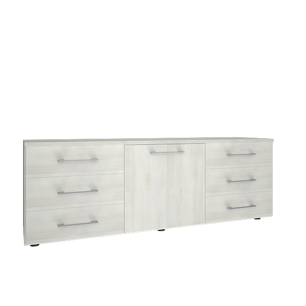 Выполнена из ЛДСП толщиной 22 и 18 мм., производство "Kronospan" (Россия). Кромка ПВХ (пр-во Германия). Центральный замок на тумбе.