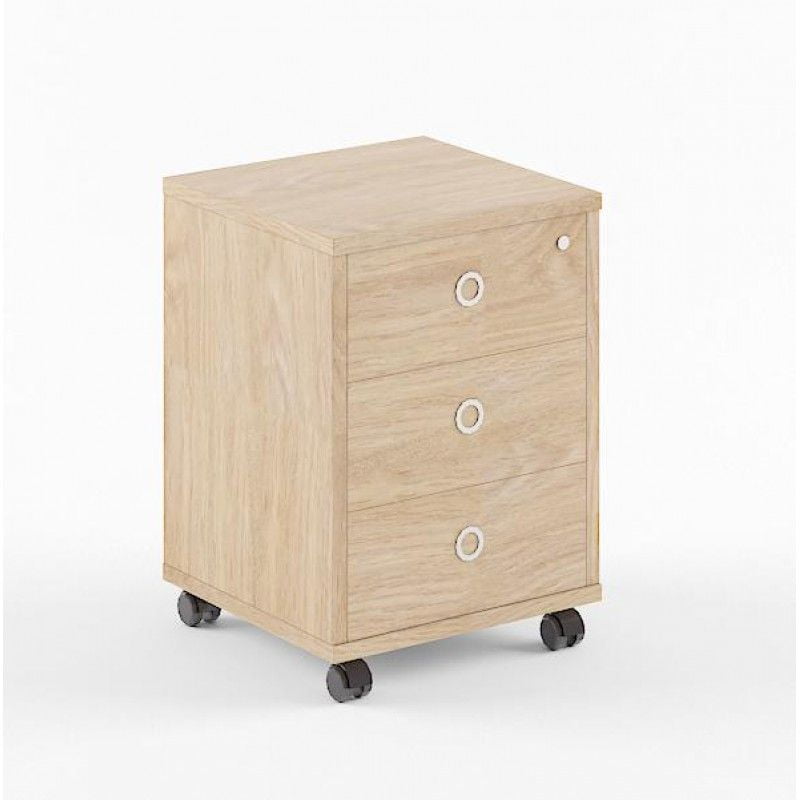 Тумба комплектуется центральным замком на 3 ящика и колесными опорами.Ручка врезная,цвет алюминний. Вес - 30кг. Объем - 0.012м.куб.